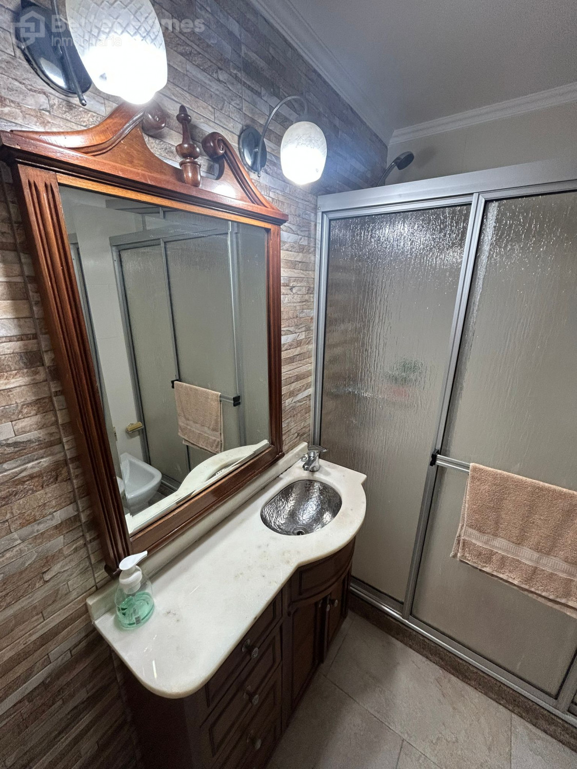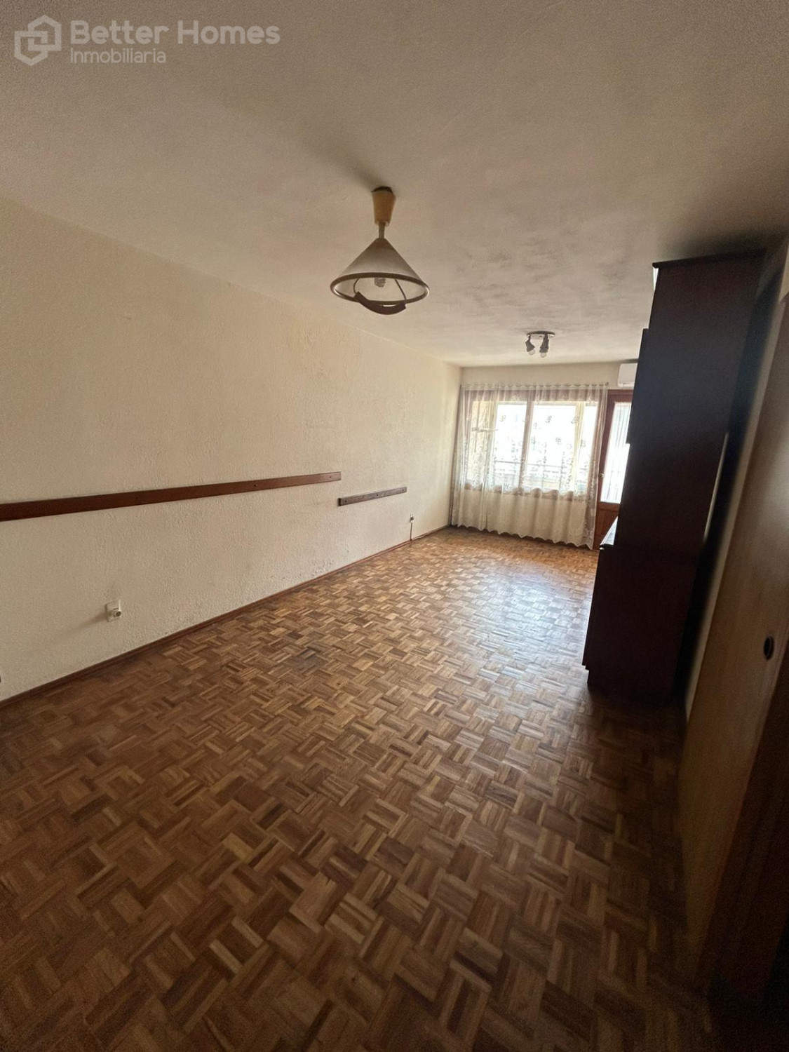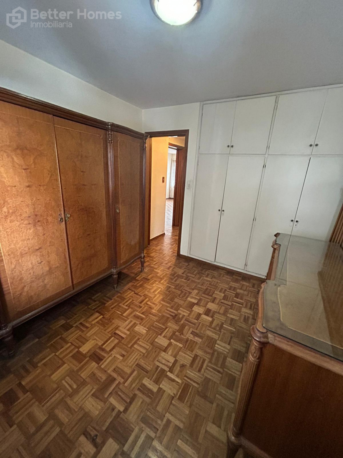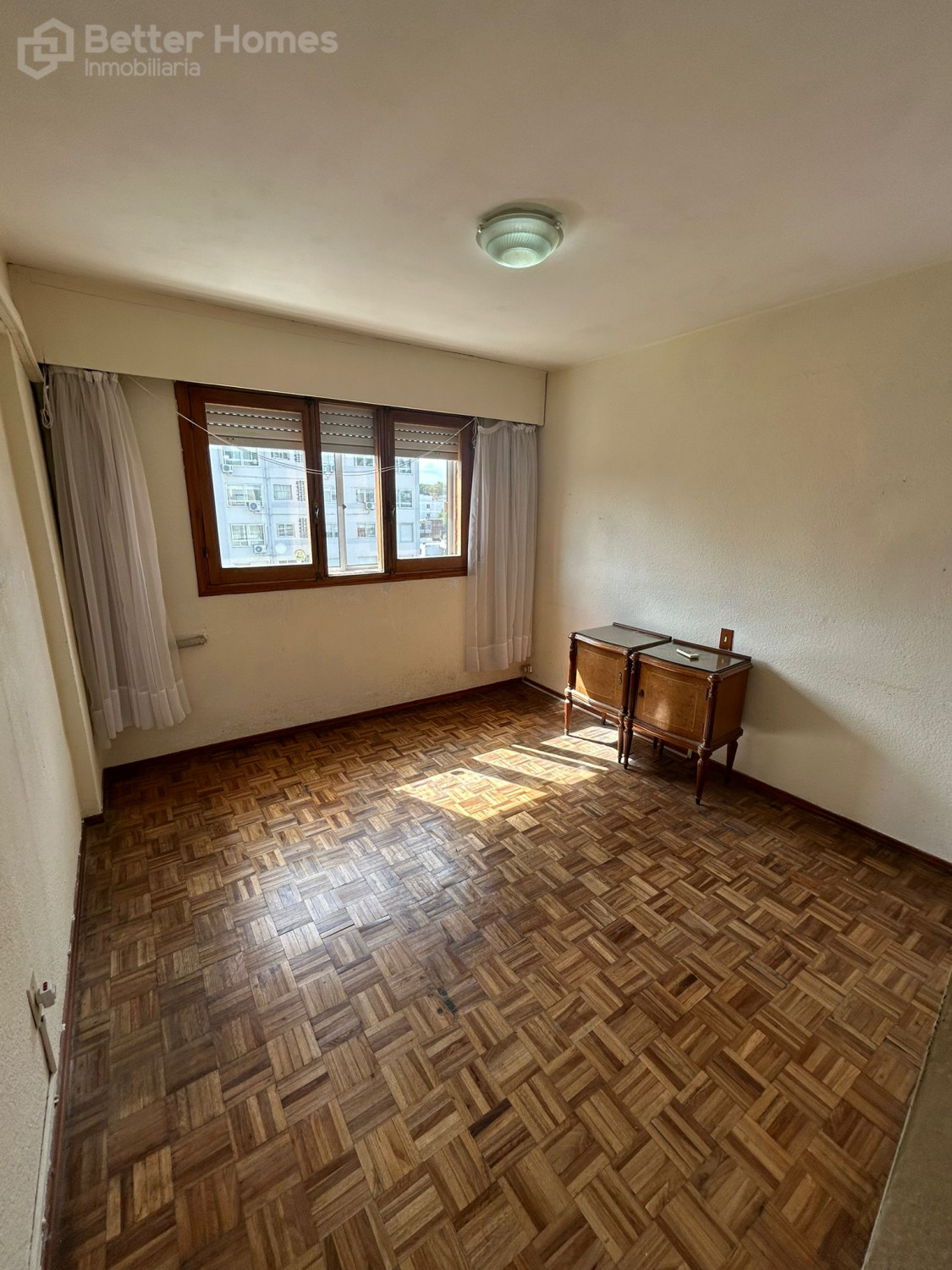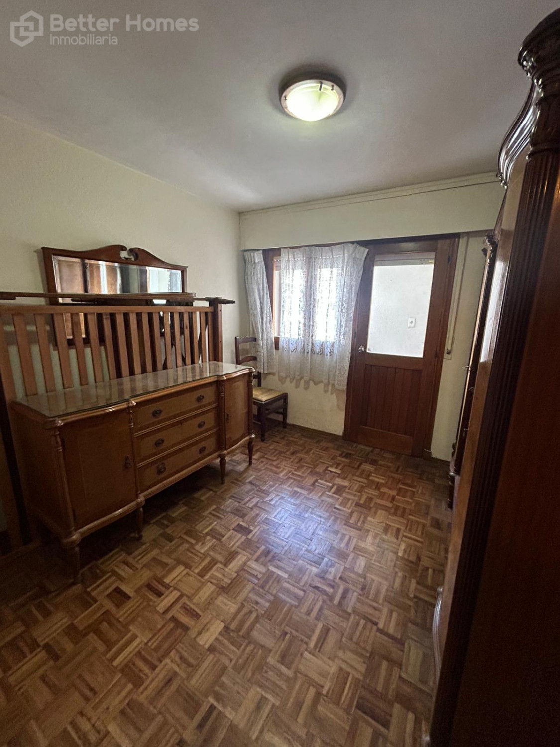 Living-comedor con pisos de parquet, terraza al frente con cerramiento, cocina definida con pasa platos hacia el living, 2 dormitorios con pisos de parquet y placares, 2 baños completos (1 en suite), terraza lavadero.